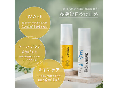 石鹸オフできるほどの肌への優しさと、高SPF値の両立を叶えました今回ナヴィーンがお届けするのは、オーガニック植物の保湿力を活かし、東洋人のキメの細かい肌特性をケアする日やけ止め2種類です。