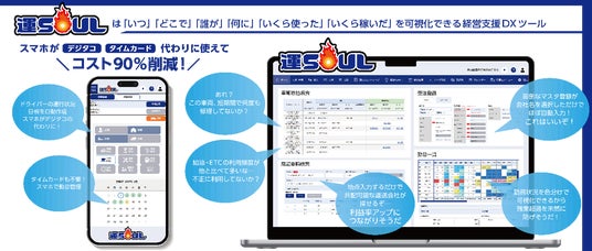 本展示会では、運送業向けの基幹システム「運SOUL」の新機能として、車輛の動態管理だけでなく、ドライバーの業務状況や勤怠もリアルタイムに把握・管理することが可能な、今までに無い動態管理機能を公開いたします。