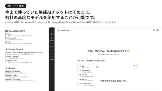 新モデル追加にも柔軟対応 今後登場する最新AIモデルもTaskhub内でスムーズに取り込めるので、