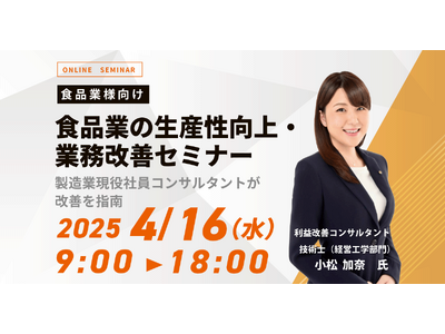 時間管理や業務効率化、原価管理など、食品業の業務改善の具体的な手法について、利益改善コンサルタント 技術士(経営工学部門) 小松 加奈 氏が解説します。