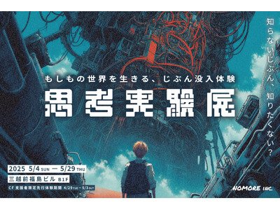 没入型体験エンターテイメントやイマーシブコンテンツを提供する株式会社NO MORE(本社:東京都渋谷区、CEO 佐田晋一郎)は、もしもの世界を生きる、じぶん没入体験『思考実験展』の開催と、先行体験可能な研究員になれるクラウドファンディングでの支援者募集開始を発表いたします。