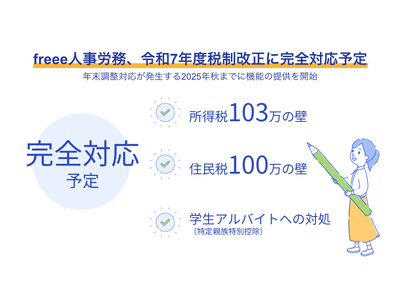 フリー株式会社(本社:東京都品川区、CEO:佐々木大輔、以下「freee」)が提供するfreee人事労務において、令和7年度の税制改正に完全対応することをお知らせします。