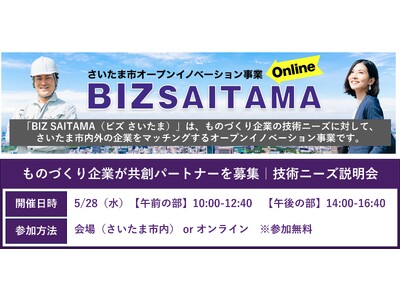 公益財団法人さいたま市産業創造財団(埼玉県さいたま市、理事長:中村雅範)は、さいたま市の委託事業として運営しているオープンイノベーション事業「BIZ SAITAMA(ビズ さいたま)」の2025年度ウェブサイトを、4月7日(月)に公開しました。