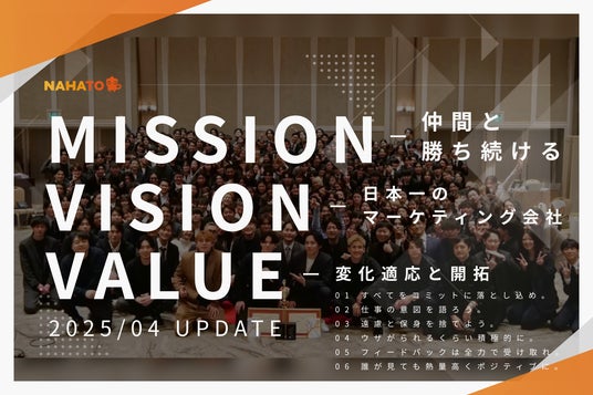 株式会社ナハト(所在地:東京都渋谷区、代表取締役:安達友基、以下ナハト)は、この度、MISSION・VISION・VALUE(以下MVV)をアップデートしたことをお知らせいたします。