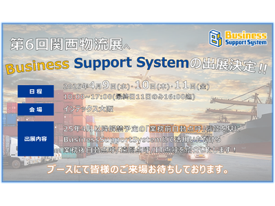運送事業者様向け点呼システム「Business Support System」をインテックス大阪開催の「関西物流展」へ出展することが決定いたしました。