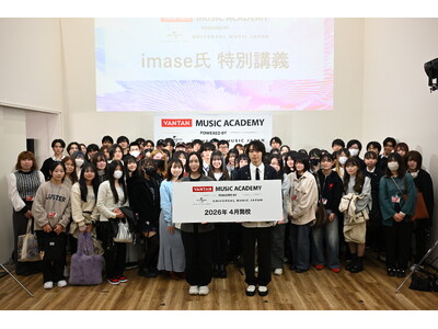 現役クリエイターによる実践的な授業を展開し、「世界で一番、社会に近いスクールを創る」をビジョンとする株式会社バンタン(本社:東京都中央区、代表取締役社長:木村良輔)は、2026年4月に開校する新しい音楽専門校「バンタンミュージックアカデミー POWERED BY ユニバーサルミュージック」において、2025年4月5日(土)に、音楽活動開始わずか1年でTikTokで楽曲をヒットさせ、2021年にメジャーデビューした、新世代アーティスト・imase氏による特別講義を実施しました。本講義では、入学検討者約80名に向けてimase氏が楽曲制作プロセスを生披露しました。参加者は、プロのアーティストによるクリエイティブな制作過程に触れる貴重な機会となり、バンタンならではの実践的な授業を体験しました。