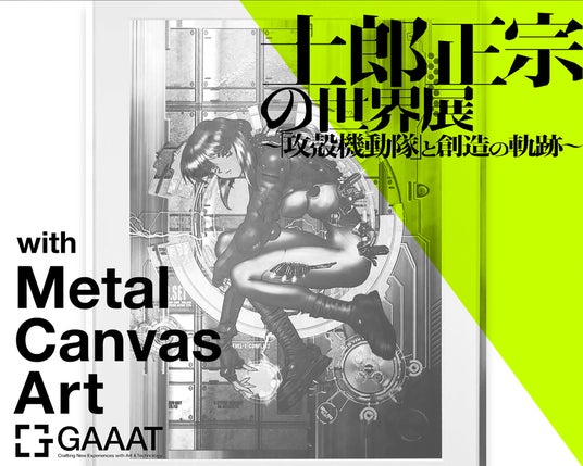 士郎正宗が手がけた「攻殻機動隊」のカバーイラストをGAAATオリジナルプロダクトであるMCA(メタルキャンバスアート)として表現。耐久性の高いメタル製のキャンバスに、独自製法で描写を行うことでメンテナンスフリーで半永久的に作品の美しさが維持され、従来の平面的なデジタルコンテンツが立体的で深みのあるアート作品として生まれ変わります。