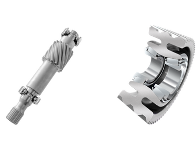 シャフトにベアリングを圧入している現行品のギヤシャフトは、シャフト径の制約により、ベアリングや減速機のサイズダウンが難しく、トルク損失の低減に課題がありました。これに対し開発品では、ギヤシャフトの外径に軸受軌道を追加しベアリングと一体化。これによりベアリングの内輪(軌道輪)が省略されることで、ベアリング外径とユニット(軸間距離)のサイズダウン、トルク損失の低減を実現。また、ベアリングの圧入工程の省略により、お客様の生産性も向上します。