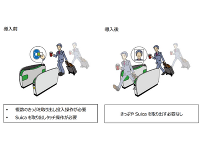 「Suica Renaissance」の推進に向けた取り組みとして、ウォークスルー改札の実現に向けた検討の一環として、きっぷやSuicaを取り出すことなく簡単に改札を通過できるように顔認証改札機の実証実験を行います。今回の実証実験では2種類の顔認証改札機を導入します。