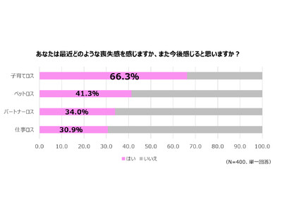 仕事や生活が変わるタイミングで感じるさまざまなロスの中で、「子育てロス」を感じる人は約7割(66.3%)となり、「ペットロス」(41%)や「パートナーロス」(34%)を大きく上回る結果になりました。
