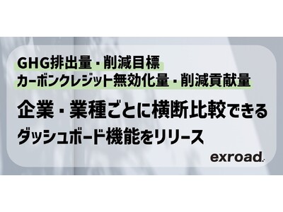 カーボンプライシング領域オールインワンデータプラットフォームを提供する株式会社exroad(エクスロード、本社:東京都港区、代表取締役:木村圭佑、以下当社)はこのたび、企業のGHG(温室効果ガス)排出量、削減目標、カーボンクレジット無効化量、削減貢献量を横断的に比較できるダッシュボード機能を開発・リリースしました。大手企業を中心に
