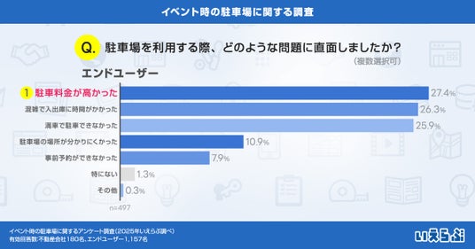 さらに、イベント会場付近の駐車場を利用したことがあると回答したエンドユーザー(497名)に