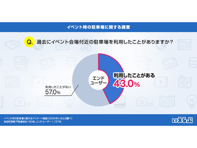 「過去にイベント会場付近の駐車場を利用したことがありますか?」と質問したところ、「利用したことがある」という回答は43.0%という結果となりました。