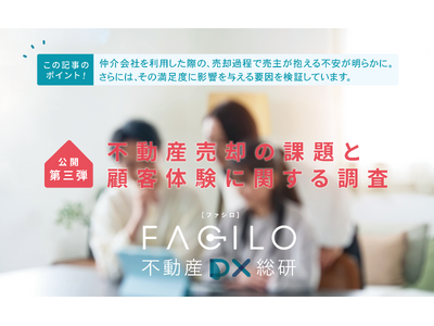 株式会社Facilo(本社:東京都港区、代表取締役 CEO:市川 紘)は、『Facilo不動産DX総研』によるリサーチ第三弾として、「不動産売却の課題と顧客体験に関する調査」を実施しました。本調査では、仲介会社を利用した不動産売却の過程で、売主が抱える不安や売却に対する満足度を左右する要因を分析しています。