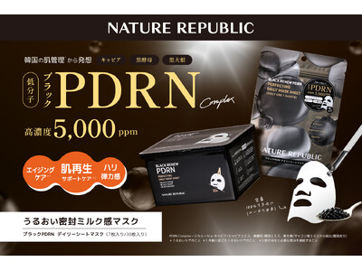 株式会社ネイチャーリパブリックジャパン(所在地:東京都浜松町)は、韓国の肌管理*1に着想を得て開発した「ブラックPDRN デイリーシートマスク」を2025年6月6日(金)より発売いたします。韓国の肌管理*1を由来とする美容成分「PDRN」に注目が集まっている中、ネイチャーリパブリックでは3種の“黒”にまつわる素材から抽出したPDRN配合のシートマスクを開発しました。キャビア(動物由来)+黒大根(植物由来)+黒酵母(菌由来)から抽出したネイチャーリパブリック独自の超低分子PDRN Complex*を5,000ppm配合した今までにないリッチな使用感のデイリーシートマスクです。