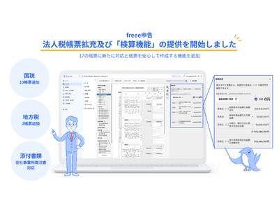 フリー株式会社(本社:東京都品川区、CEO:佐々木大輔、以下「freee」)は、税務申告サービス「freee申告」において、対応する法人税帳票の拡充と検算機能の提供を開始しました。