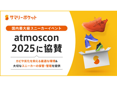株式会社サマリー(本社:東京都千代田区、代表取締役:日下部康介)が運営する、荷物保管サービス「サマリーポケット」は、「atmos」が運営する国内最大級のスニーカーイベント「atmoscon 2025」へ協賛します。本協賛において安心・安全でスニーカー保管に最適な保管サービスを通じ、スニーカー文化のさらなる発展を支援するとともに、スニーカーファンの皆さまのライフスタイルの質の向上に貢献してまいります。