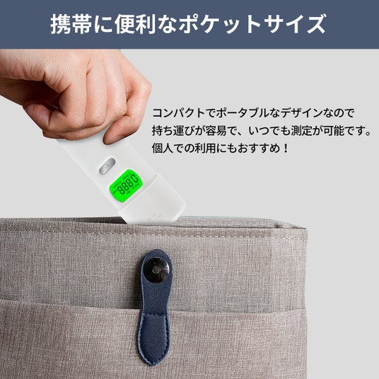 非常にコンパクトサイズなので、いつでも携帯して計測ができます。(付属の専用ポーチもご活用ください。)