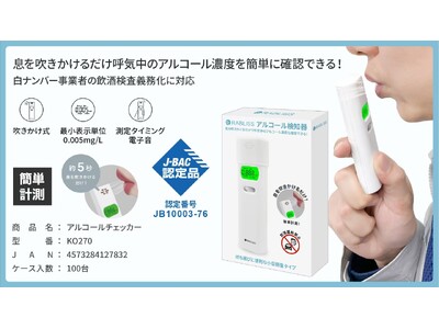 小林薬品株式会社製 アルコール検知器 KO270(半導体ガスセンサー式)は、シンプル機能 かつ 低価格でお取扱いしている商品です。認定機器番号JB10003-76