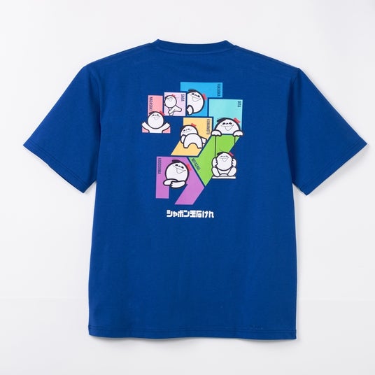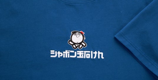 今回のTシャツはシャボン玉石けんのイメージカラーであるブルーを基調とし、表にはイメージキャラクターであるシャボンちゃんの刺繍があしらわれており、裏には九州7県の形に様々なシャボンちゃんがデザインされています。