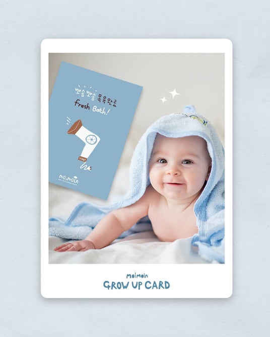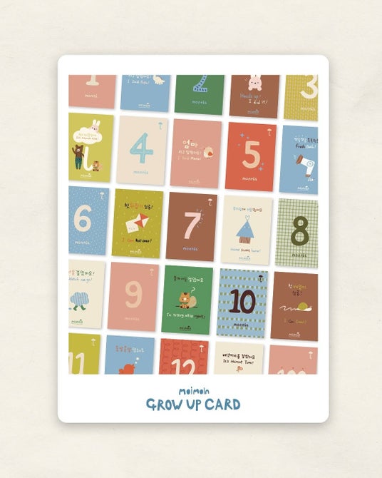新しいラインの誕生を記念して、モイモルンオリジナルノベルティ「GROW UP CARD」が登場。お子様の成長記録としてお使いいただける、SNS映え間違いなしのデザインとなっており、「mini moi」ラインやベビーアイテムとともにギフトとしても喜ばれるカードです。大切なお子様やご友人のお子様へのプレゼントに、ぜひご活用ください。