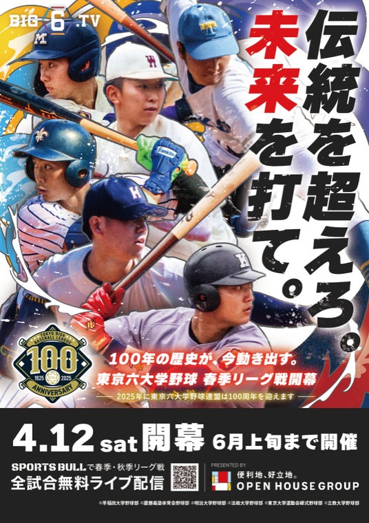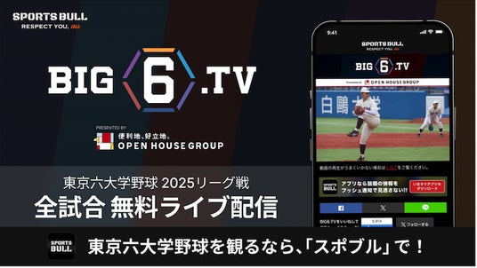 株式会社運動通信社(本社:東京都港区、代表取締役:⿊飛功⼆朗)と株式会社スポーツマーケティングラボラトリー(本社:東京都港区、代表取締役:荒木重雄)は、一般財団法人東京六大学野球連盟(以下「同連盟」)公認のもと、同連盟が主催する東京六大学野球2025リーグ戦について、運動通信社が運営するスポーツメディア「SPORTS BULL(スポーツブル)」内の「BIG6.TV(ビッグシックスティービー)」(