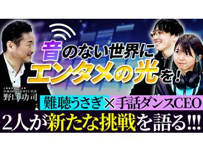今回のコラボ動画では、7回の転職を経て一代で年商100億円企業を築いた起業家 野口功司が、ビジネスの世界にはなかなか馴染みない「障がい」というテーマについて切り込んでいくのが見どころ。意外と知らない手話の豆知識からお二人の苦労話や活動内容、またハンディキャップを乗り越えて新しいことに挑戦する楽しさなど、「障がい×エンタメ」の可能性についてお伝えしています。