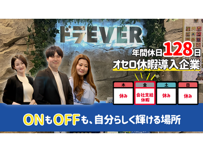 株式会社ドラEVER(本社:東京都港区、代表取締役:岡野照彦)は、従業員のワークライフバランス向上を目的に、年間休日128日をより有効に活用できる新たな休暇制度「オセロ休暇」を導入いたしました。