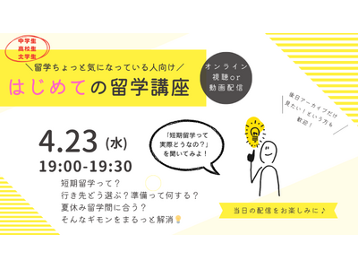 株式会社イクシル(神奈川県川崎市川崎区、代表取締役:伊藤 千佳子、以下当社)は、2025年4月23日(水)に、留学初心者の方を対象としたオンラインセミナー『