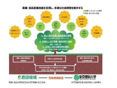 国立研究開発法人 農業・食品産業技術総合研究機構(理事長:久間 和生、以下「農研機構」)と学校法人 東京理科大学(理事長: 浜本 隆之、学長:石川 正俊、以下「東京理科大学」)は、農業・食品分野を中核としたSociety5.0の早期実現を目指し、包括連携協定を2025年4月14日(月曜日)に締結いたしました(詳細は概要を参照)。