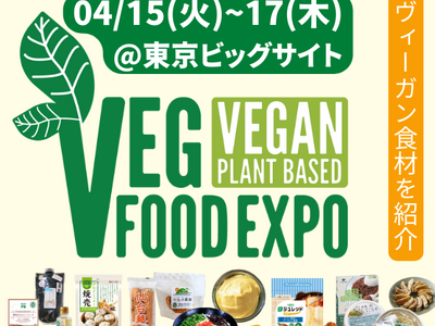 4/15~17、東京ビッグサイトにて『プレミアム・フードショー』が開催されます。これは、国内外で需要が高まるヴィーガン・グルテンフリー・ハラールなどに対応した食品を紹介する事業者向け食の展示会です。中食・外食に特化した国内最大級の業務用専門展FABEXとの同時開催により、3日間で6万人の業界関係者の来場が見込まれています。今年も同展示会とNPO法人ベジプロジェクトジャパンのコラボ企画として、VEG FOOD EXPO(ベジフードエキスポ)が開催されます。
