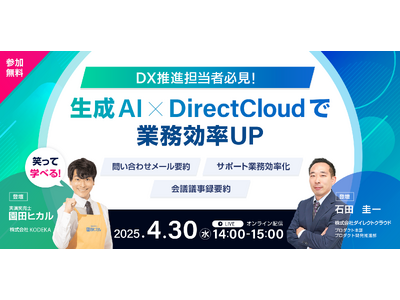 「生成AI×DirectCloud」をテーマに特別ゲストを迎えてウェビナーを開催いたします。