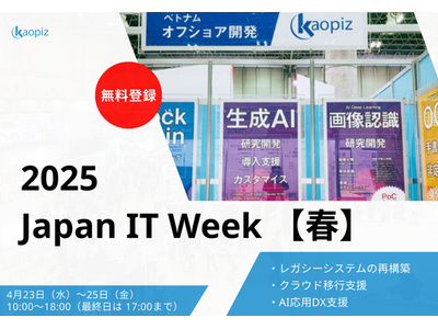 株式会社カオピーズは、来る2025年4月23日から東京ビッグサイトで開催される「Japan IT Week【春】2025」の「ソフトウェア&アプリ開発展」に出展する運びとなりました。