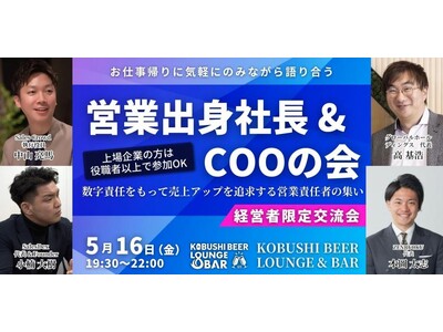 【5月16日(金)19:30~】営業出身社長&COOの飲み会 ※上場企業で予算決裁権をお持ちの方は役職者以上で参加可能