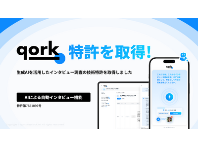 株式会社Quest Research(本社:東京都港区、代表取締役:南健太)は、生成AIを活用したインタビューサービス「qork(コルク)」に関する独自技術で特許を取得したことをお知らせします。