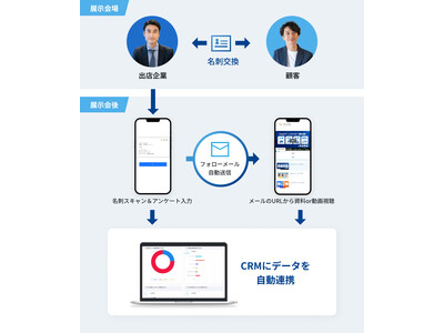 名刺スキャン後に資料や動画を自動送信し、視聴ログもトラッキング。これにより、お客様の関心を把握し、適切なフォローが可能です。