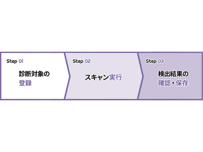 シンプルな3ステップにより、脆弱性診断のハードルを大きく下げ、誰でもスピーディに診断を行える環境を提供します。