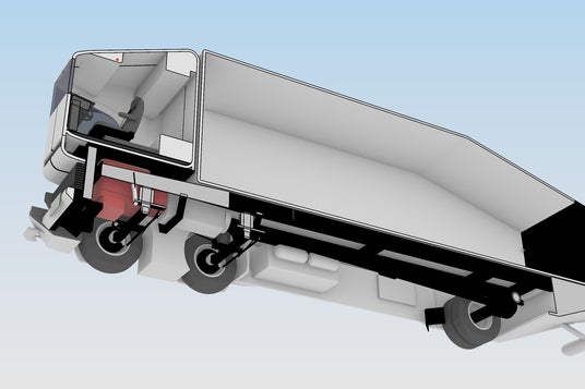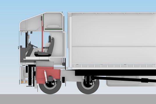 下の断面図からわかるように、車両の基本となるエンジンや、車軸、荷台などの構成は現在運用されているトラックと同様です。そのため、メンテナンスなどの整備性や、実務を行う上で重要となる耐久性、信頼性などに変化はありません。