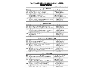 おもちゃを販売している全国の小売業者と卸売業者が、今年の玩具商戦で売れると思うおもちゃ、売りたいおもちゃを投票して決める「おもちゃ屋が選んだ今年売れるおもちゃ2025」の結果が4月16日に発表された。