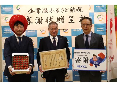 株式会社NEXYZ.Group(本社:東京都渋谷区 代表取締役社長 兼 グループ代表 近藤太香巳 証券コード:4346 以下、当社)の子会社である株式会社NEXYZ.ファシリティーズは地方創生応援税制(企業版ふるさと納税)を活用し、徳島県 東みよし町の「にし阿波いちごタウンプロジェクト」への寄附を行い贈呈式が開催されましたのでお知らせします。