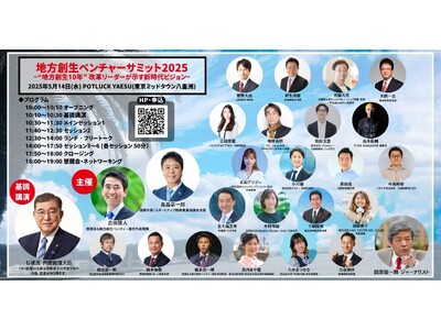 「一般社団法人 熱意ある地方創生ベンチャー連合(代表理事=吉田雄人)」が、「スタートアップ都市推進協議会(会長=高島 宗一郎 福岡市長)」と共催で毎年開催している『地方創生ベンチャーサミット』、今年は『地方創生ベンチャーサミット2025 ~ “地方創生10年”改革リーダーが示す新時代ビジョン ~』と題し、2025年5月14日(水)にPOTLUCK YAESU(東京ミッドタウン八重洲)にて開催いたします。