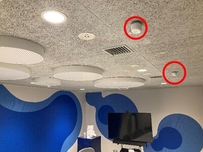赤丸内がオープンスペースに設置したCOCOSTATのセンサー