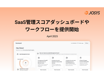 ITガバナンスを強化をすることを目的としたSaaS ID管理プラットフォームを運営するジョーシス株式会社(本社:東京都港区、代表取締役CEO:松本恭攝)は、効果的なSaaS管理を実現するためのスコアリングシステムとダッシュボードをリリースしました。さらに、適切なSaaSアカウントの管理を行うための、自動化されたアクセスマネジメントワークフローを新機能として公開しました。
