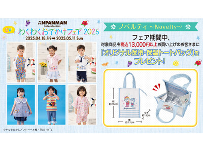 https://p-bandai.jp/anpanman-kids/ )にて対象商品を13,000円(税込)以上お買い上げのお客様に「オリジナル保冷・保温トートバッグ」をプレゼントするキャンペーンを実施いたします。