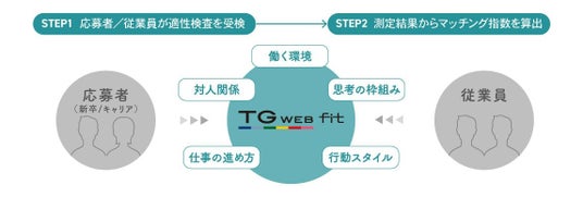 ヒューマネージは、40を超える組織において独自の調査研究を行い、個人と組織のマッチングに影響を与える指標=“5つの価値観(軸)”を明らかにし、そのマッチングロジックを搭載したアセスメントツール『TG-WEB fit』を開発。これは、「働く動機」「思考の枠組み」「行動スタイル」「仕事の進め方」「対人関係」と、仕事に取り組む上でマッチングに影響する5つの価値観にフォーカスし、採用候補者および従業員の価値観を測定し、最適なマッチングを図ることで、さまざまな人事課題の解決を促進する。