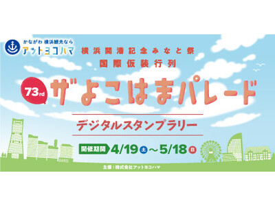 株式会社アットヨコハマ(本社:横浜市神奈川区栄町7-1/代表取締役:上野健彦・宮原漢二)※は、国際仮装行列実行委員会(横浜商工会議所事業推進部内)と連携し、ザよこはまパレードのコース沿道を中心に、デジタルスタンプラリーを4月19日(土)から5月18日(日)まで実施いたします。