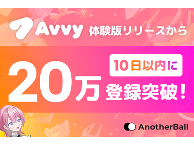 AnotherBall Pte. Ltd.(CEO:大湯 俊介) は、VTuberアバター作成・配信アプリ「Avvy(アヴィ)」の体験版を2025年4月3日にリリースし、2025年4月13日までの10日間で累計20万登録を突破したことをお知らせいたします。
