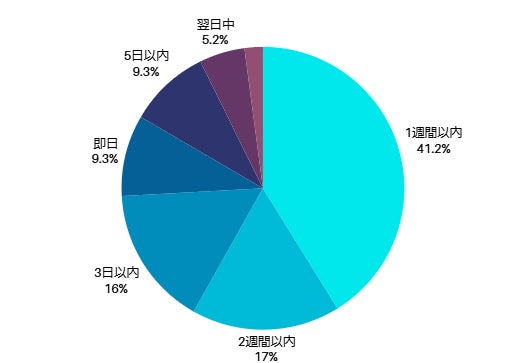 「1週間以内」が41.2%で最も多かったが、「2週間以内」が17%、「3日以内」が16%とこれに続いた。なお、即日発行ができた人は全体の9.3%だった。
