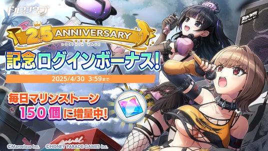 株式会社HONEY∞PARADE GAMES(代表取締役 三浦 徹朗/所在地:東京都品川区)は、爽快ジェットバトルゲーム『ドルフィンウェーブ』(以下:ドルウェブ)について、本日4月20日(日) にサービス開始から2.5周年を迎えたことをお知らせいたします。また2.5周年を記念した各種イベントやキャンペーンを開始いたします。