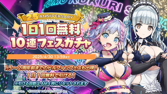 ドルフィンウェーブ2.5周年を記念して「1日1回無料10連フェスガチャ」を開催いたします!